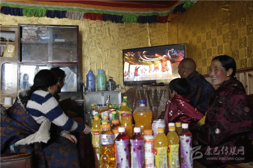 家里鋼爐中的火還在熊熊燃燒,滾燙的奶茶冒著陣陣香氣,藏桌上擺放的各種糖果、飲料和零食,顯現(xiàn)出這個(gè)牧民家庭已經(jīng)衣食無(wú)憂。50寸大彩電播放著精彩的文藝節(jié)目,讓這個(gè)家庭感受到了文藝帶給他們的快樂(lè)。眼前的一切,也讓記者在藏區(qū)牧民家中感受到了濃濃的年味。