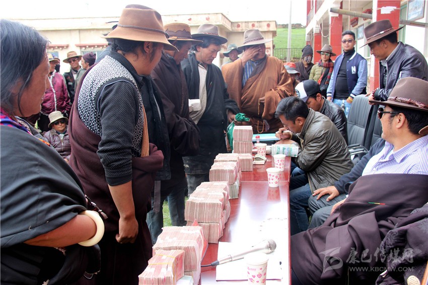 分紅現(xiàn)場,鎮(zhèn)黨委、政府及該鎮(zhèn)聯(lián)系點(diǎn)領(lǐng)導(dǎo)代表全體社員向9名合作社的理事、基層黨員先鋒模范敬獻(xiàn)哈達(dá),并為其發(fā)放獎金共計(jì)45000元。普巴郎加在領(lǐng)到獎金后激動地說:“大家信任我們將合作社交到我們手上,今天的成果屬于每一位社員,我們也將更加努力把合作社越辦越紅火。”
