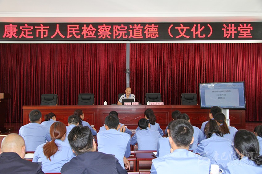 為推進檢察文化與公民道德建設(shè),深入學習九龍縣人民檢察院原黨組書記、檢察長蘇知斌同志的先進事跡,扎實開展政法機關(guān)“講政治、提能力、鑄忠魂”主題教育活動,8月2日,康定市人民檢察院舉辦了道德(文化)講堂活動。我州學者韓曉紅圍繞康巴文化和社會責任等,作了題為“文化與社會安全”的專題講座。 (胡海佳 攝影報道)