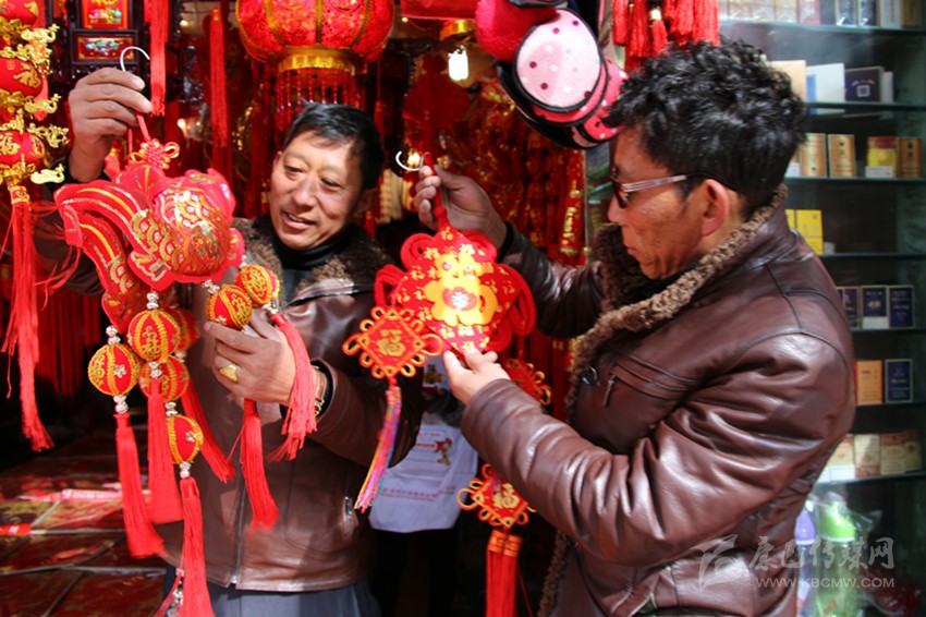 洛讓邊說邊看著單子,“啊”了一聲,說:“差點忘了老婆大人交代的大事?!痹瓉恚R走時,洛讓老婆特意叮囑他要買春聯(lián)、中國結和燈籠。好在側旁的郭達橋內江小百貨店就有賣,買好之后,洛讓又特意挑選了一個金線編織的魚掛飾,“這個好,這個好,年年有余。”滿臉充滿憧憬。
