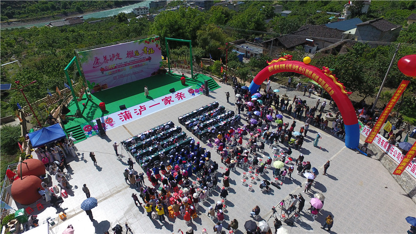 此前的4月27日,濛濛細(xì)雨中,一場“既高規(guī)格又接地氣”的主題晚會更是點(diǎn)亮紅城,耳熟能詳?shù)挠茡P(yáng)樂曲、龍騰飛揚(yáng)的歌伴舞、深情款款的詩朗誦,《往事瀘定》《紅色瀘定》《幸福瀘定》三個(gè)篇章引得臺下喝彩連連,掌聲雷動,瀘定橋廣場更是被“層層包圍”。在活動現(xiàn)場,蒲瀘兩地旅游餐飲行業(yè)協(xié)會聯(lián)合打造的文創(chuàng)旅游產(chǎn)品——櫻桃小酒正式亮相啟售。