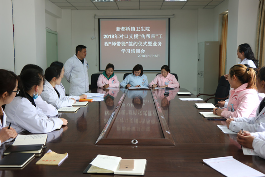 春風沐浴、雨露滋潤;德隆情盛、高屋建瓴。為進一步提升康定地區(qū)基層醫(yī)療衛(wèi)生機構(gòu)服務能力,打造一支有擔當、有能力、可支撐的本土醫(yī)療衛(wèi)生人才隊伍。在對口幫扶工作中,康定市衛(wèi)計局高度重視本土人才培養(yǎng),將“傳幫帶”工作作為了重點。2018年1月8日,康定市疾控中心與都江堰市疾控中心通過座談商榷了“傳幫帶”幫扶方案,達成了共識,下一步將通過對口幫扶,互訪交流、業(yè)務培訓,信息溝通共享等方式,在綜合管理、等級評審、人員能力建設、實驗室檢驗檢測能力建設、應急處置能力建設等方面進行重點“傳幫帶”。與此同時,康定市第二人民醫(yī)院舉辦了對口支援“傳幫帶”工程“師帶徒”簽約儀式暨工作推進會議。會上各位專家與選中的學員進行現(xiàn)場簽約,雙方約定在今后的一年中,專家們通過理論培訓、教學手術(操作)、教學查房、疑難病例討論、常見病多發(fā)病診治、開展新技術新業(yè)務等方面進行指導、幫扶、協(xié)作,明確了各自的目標任務和工作職責。