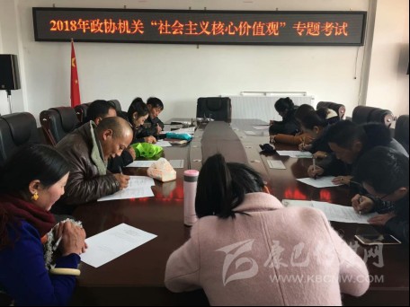為書面測試廣大干部職工“社會主義核心價值觀”的實踐意義,11月29日下午2:00,2018年石渠縣政協(xié)機(jī)關(guān)“社會主義核心價值觀”專題考試,在縣政協(xié)黨組成員、副主席楊國華的監(jiān)考下開始。其書面閉卷筆試為:單項和多項選擇題及簡答“三嚴(yán)三實”與“社會主義核心價值觀”內(nèi)容和論述題:一是結(jié)合藏區(qū)與自己的思想實際及政協(xié)工作特點(diǎn),有條理的闡述如何開展“社會主義核心價值觀”實踐活動;二是踐行“社會主義核心價值觀”的重大意義及措施、方法等。通過一小時左右的臨場測試,應(yīng)考的政協(xié)機(jī)關(guān)干部職工含臨時工、駕駛員、實習(xí)生等,人人均遞交了滿意的答卷。