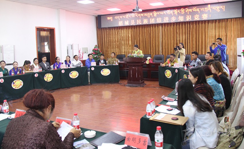 2015年6月25日至26日,組織開展了民族團(tuán)結(jié)進(jìn)步知識競賽,全縣3個片區(qū)工委、14個鄉(xiāng)鎮(zhèn)組成3支代表隊以及黨政機(jī)關(guān)代表隊、經(jīng)濟(jì)系統(tǒng)代表隊、文教衛(wèi)系統(tǒng)代表隊、亞丁景區(qū)管理代表隊、政法系統(tǒng)代表隊、農(nóng)口系統(tǒng)代表隊共9支代表隊27名隊員進(jìn)入了決賽,鄉(xiāng)鎮(zhèn)和縣級機(jī)關(guān)單位共80余人觀看了比賽。