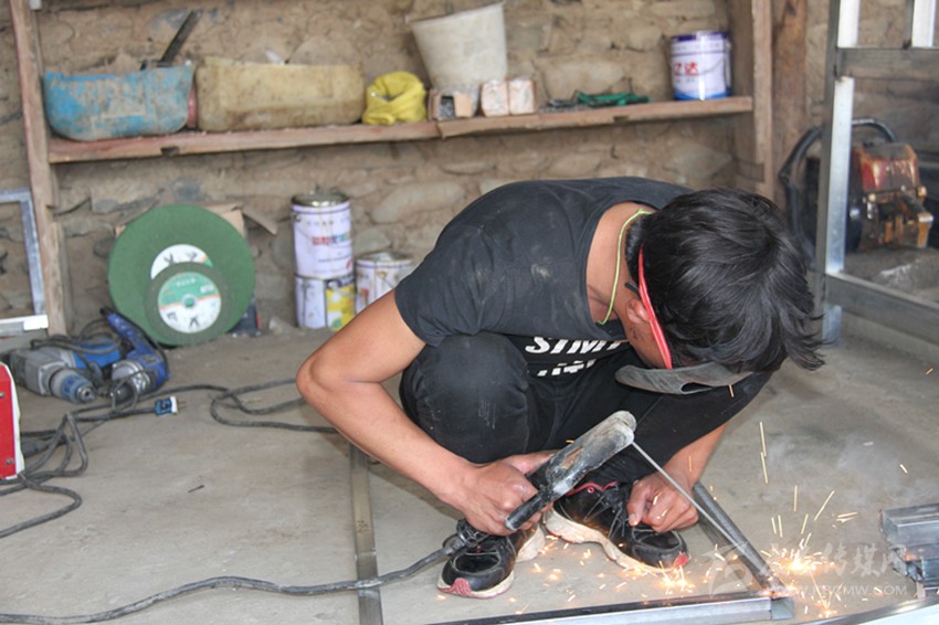 去年曲珠加入了理塘縣甲中馬鈴薯種植專業(yè)合作社,還成為了村級(jí)基礎(chǔ)設(shè)施管護(hù)員,人均年純收入達(dá)到4467元,順利實(shí)現(xiàn)脫貧。今年初,參加農(nóng)機(jī)維修和電焊技術(shù)技能培訓(xùn)后,曲珠開辦了一個(gè)家庭農(nóng)具維修店,主要維修拖拉機(jī)、摩托車、焊接鐵門和青稞鐵柜,今年4月開業(yè)以來(lái),已有萬(wàn)余元的收入。