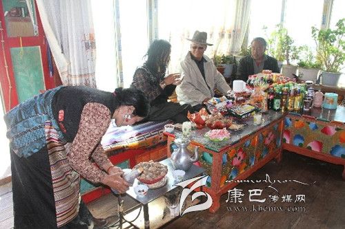 說(shuō)話間,聽見(jiàn)女兒四郎曲珍和媽媽從廚房里端著牛肉包子走了出來(lái)。廚房里冰箱、高壓電飯煲等家用電器一應(yīng)俱全,他興激動(dòng)地說(shuō):“現(xiàn)在,縣上大力實(shí)施農(nóng)村的五通工程,用電也十分方便;以前打酥油茶都用木桶,現(xiàn)在有高原專用的打茶機(jī),既快捷又方便;……”
