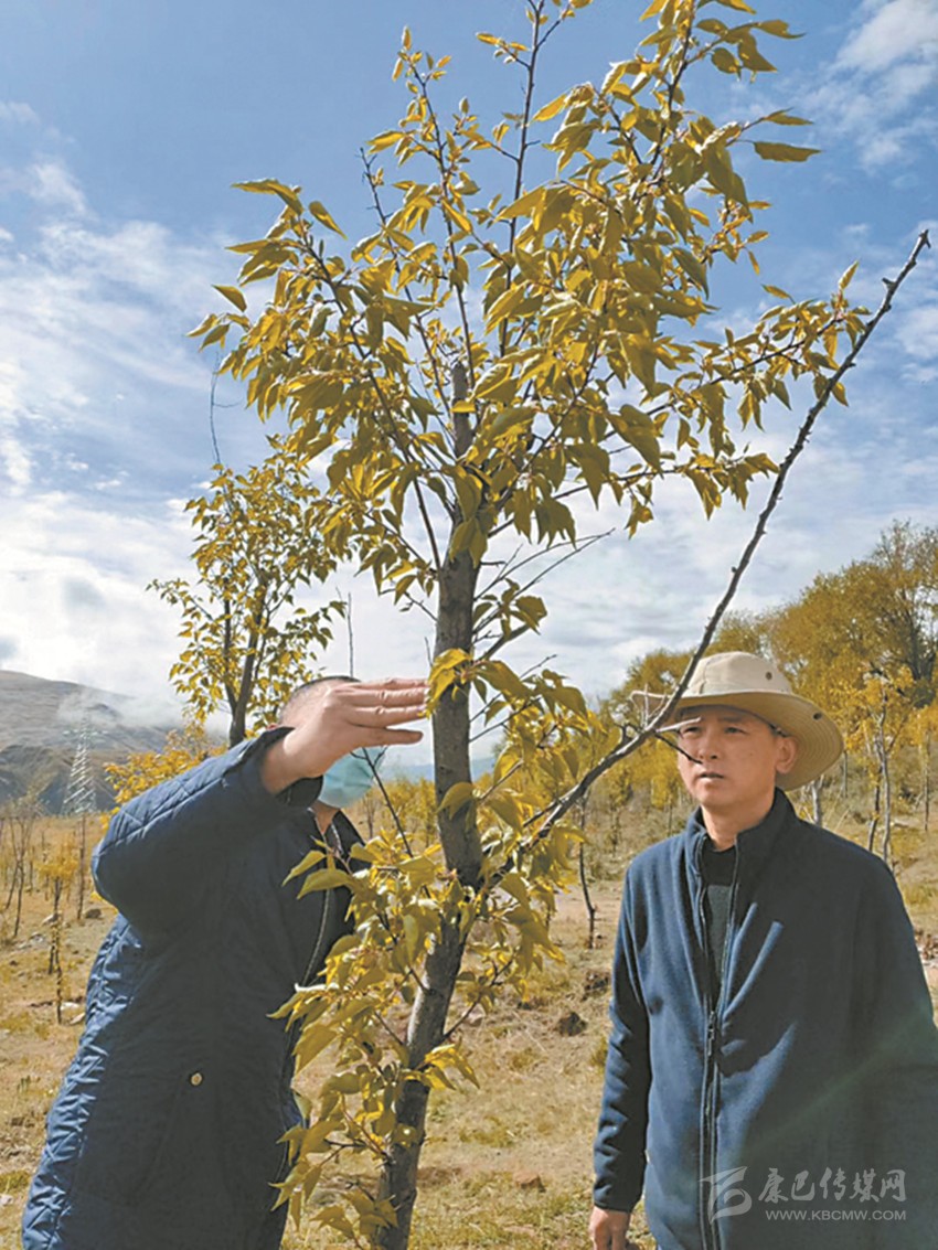 爐霍縣林草局技術人員檢查杏樹病蟲害情況。 爐霍縣林草局 供圖