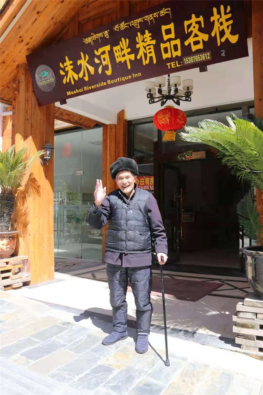 不知不覺中,采訪到了尾聲。伍國(guó)梁堅(jiān)持送記者離開,步伐雖緩,每一步都踩得很穩(wěn)。當(dāng)走出“沫水河畔精品民宿”大門時(shí),伍國(guó)梁一句“Welcome To MoXi!”令記者十分感動(dòng)。因?yàn)?,這話語(yǔ)背后,是一坐小鎮(zhèn)幾十年間的變化,也是一位耄耋老人對(duì)逝去歲月的認(rèn)可,還有對(duì)未來(lái)的美好憧憬!
