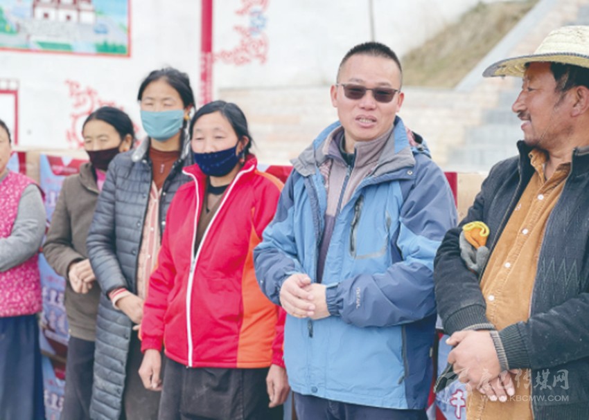黃先明、仁青與村民在一起。