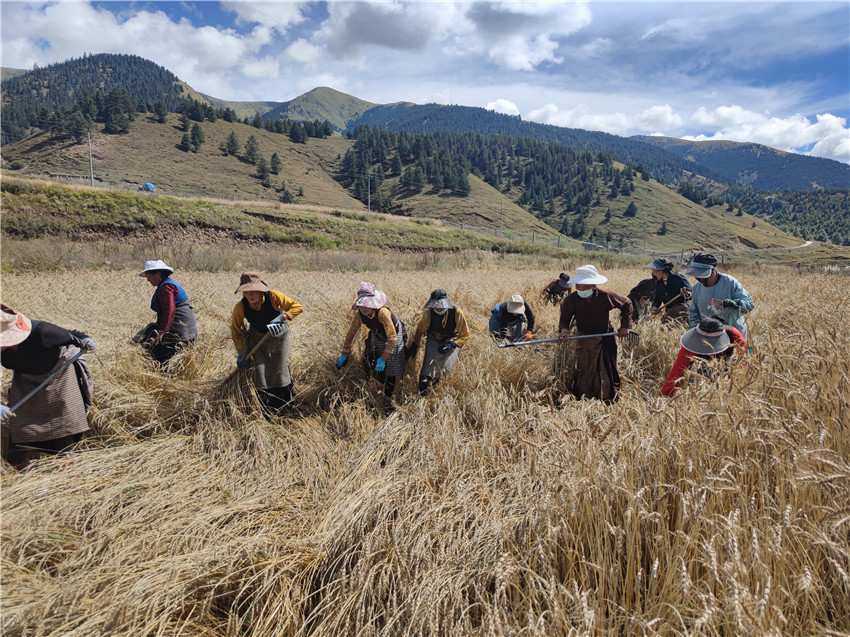 “增德村距鄉(xiāng)衛(wèi)生院差不多有6公里左右,衛(wèi)生院醫(yī)護(hù)人員每天到秋收現(xiàn)場對(duì)群眾進(jìn)行核酸檢測,解決了秋收期間群眾兩頭跑的實(shí)際問題,現(xiàn)在鄉(xiāng)干部又來幫助我們秋收,今年豐收應(yīng)該沒有問題?!痹麓妩h支部書記格桑甲措說。