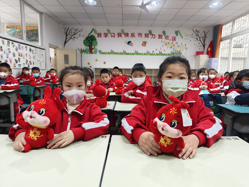 記者注意到,整個校園及各班教室都布置了精美的迎新文化墻,上面張貼懸掛著學(xué)生們在寒假生活中制作的主題創(chuàng)意海報。教室內(nèi),每張課桌上不僅插著寫滿祝福語的彩色氣球,還擺放著用紅絲帶打包好的新課本或一套精美文具或一只兔子玩偶,亦或是棒棒糖、旺仔牛奶等零食,均寓意新學(xué)期大吉大利、越來越棒、大展鴻“兔”、“兔”飛猛進(jìn)。“這些別出心裁的小禮物,能給孩子們留下一個美好的記憶點(diǎn),在給學(xué)生們帶來驚喜的同時,也送上一份最美、最真摯的新學(xué)期祝福!”教師黃宇虹說。