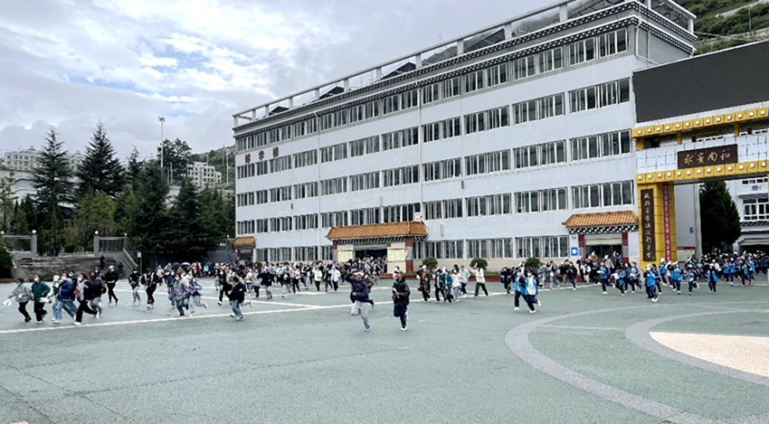 康定中學(xué)應(yīng)急疏散演練現(xiàn)場(chǎng)。