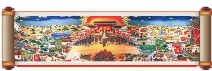 長6.45米、寬1.65米的畫布上,近大遠小的透視與明暗關(guān)系的變化交織,旖旎同嵯峨并現(xiàn),栩栩如生地將80多年前發(fā)生在這片甘孜高原的紅軍長征史詩圖景完整還原:“飛奪瀘定橋”“朱德總司令與格達活佛的深厚情誼”“甘孜勝利會師”……16個組圖場景、32個故事片段、1415個人物形象,經(jīng)過爐霍20名郎卡杰唐卡畫師600多個日夜繪制,一幅用非遺技藝弘揚紅色精神的巨幅唐卡《紅星照耀雪域》震撼完成。《紅星照耀雪域》將“紅軍長征在甘孜”的歷史事件,在國家級非遺代表性項目郎卡杰畫派唐卡的描繪下“躍然紙上”,生動形象地展示出甘孜大地上各民族共同團結(jié)奮斗的軍民魚水情。