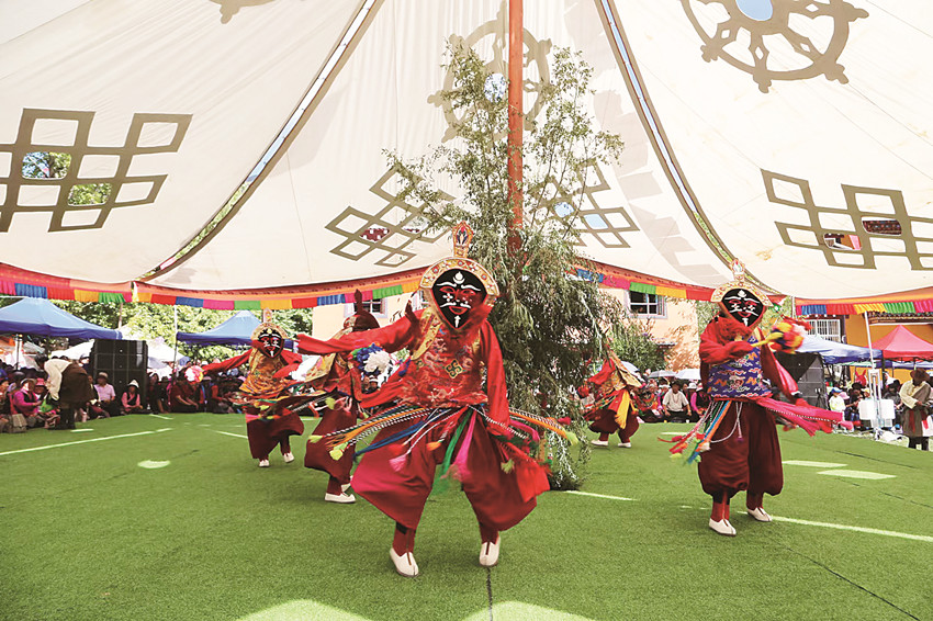 “能夠有這么好的機(jī)會跟拉薩藏戲團(tuán)和巴塘藏戲團(tuán)一起互相交流、互相學(xué)習(xí)我感到非常榮幸。藏戲藝術(shù)是藏民族文化中一朵璀璨的明珠,也是中華民族戲曲藝術(shù)寶庫中的瑰寶。希望通過這次‘央勒節(jié)’非遺文化交流演出,回望經(jīng)典、歌頌時代、對話交流,推動藏戲藝術(shù)的傳承、保護(hù)和發(fā)展?!崩硖敛貞驁F(tuán)負(fù)責(zé)人洛絨登巴感慨不已。