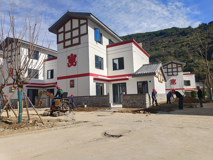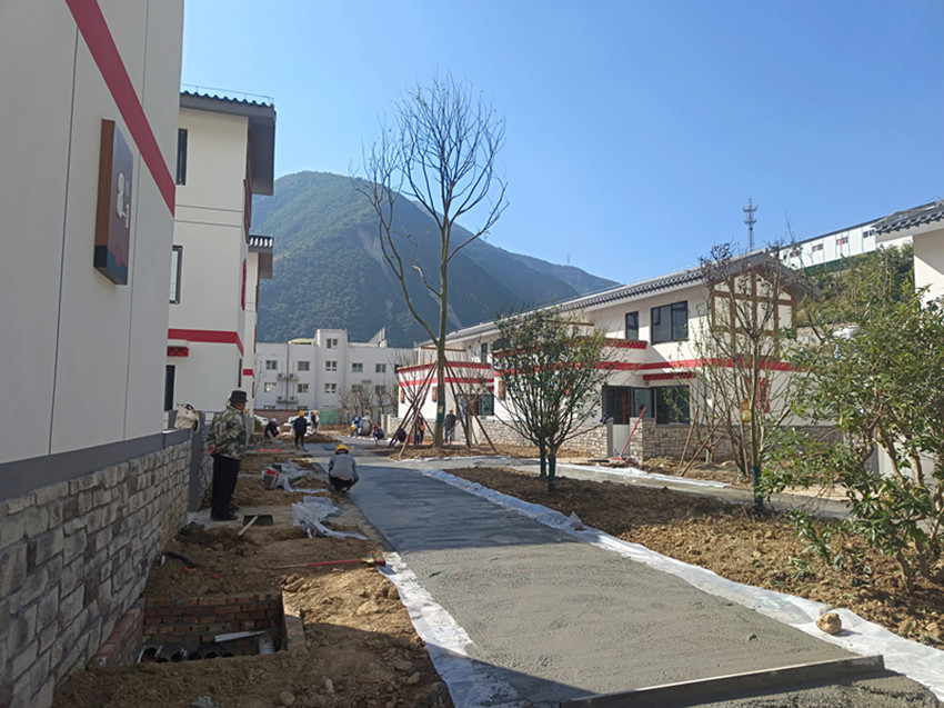 11月5日,記者走進瀘定縣德威鎮(zhèn)奎武村“9·5”瀘定地震災后重建集中安置點,只見一幢幢繪有“如意結(jié)”和穿斗裝飾等瀘定傳統(tǒng)建筑元素以及“瀘定紅”“紅飄帶”等民族特色的安置房沿大渡河畔依次排開,一條條寬敞平整的水泥硬化道路將這些風貌一致、戶型合理、結(jié)構(gòu)安全的安置房屋串聯(lián)起來。幾十名工人正在安置點內(nèi)忙碌,有的在鋪設路面、有的在栽種綠化樹、有的在搬運廢渣……,拿到鑰匙的部分村民正在進行室內(nèi)裝修,現(xiàn)場一派繁忙景象。