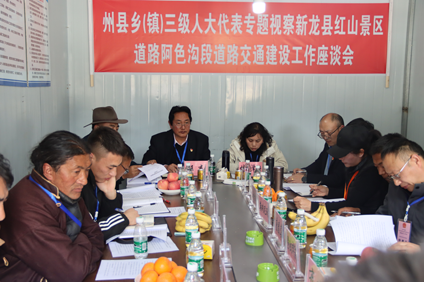 “設(shè)計(jì)車(chē)流承載量有多大,什么時(shí)候能夠完全竣工?”“要件都辦齊沒(méi)有?資金到位情況咋樣?”“全縣群眾對(duì)這條路充滿期望和關(guān)注,一定要加快進(jìn)度、嚴(yán)格監(jiān)管,保證安全、質(zhì)量和環(huán)保;政府要統(tǒng)籌推動(dòng),相關(guān)部門(mén)要各司其職,確保把這條路建成惠民路、發(fā)展路、生態(tài)路、廉潔路……”2023年4月7日,新龍縣紅山景區(qū)道路阿色溝段建設(shè)施工現(xiàn)場(chǎng),二十多名州、縣、鄉(xiāng)人大代表一邊查看道路建設(shè)情況,一邊對(duì)縣政府分管副縣長(zhǎng)和相關(guān)部門(mén)負(fù)責(zé)人提出問(wèn)題和建議。一問(wèn)一答之間,彰顯人大依法履職、服務(wù)發(fā)展的責(zé)任和擔(dān)當(dāng)。