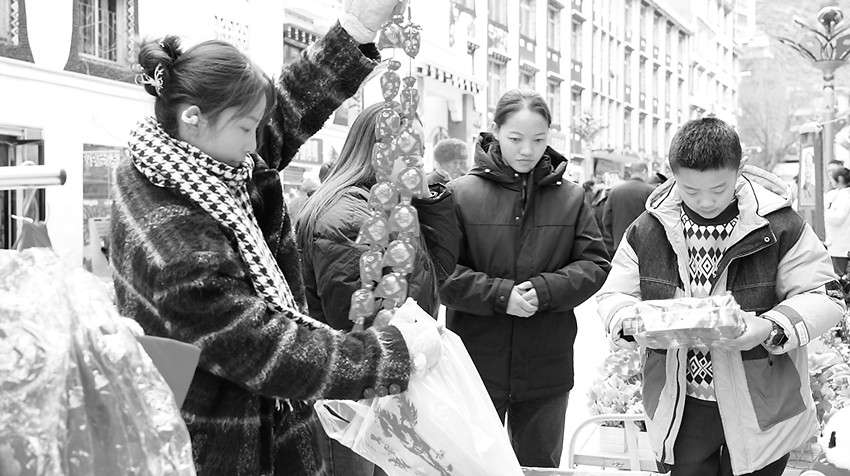 一進(jìn)入臘月,年的味道越來越濃,丹巴縣家家戶戶采辦年貨的熱情也逐漸高漲,所有商店和集貿(mào)市場(chǎng)人頭攢動(dòng),開始熱鬧起來。人們忙著選購(gòu)各種商品,迎接新年的到來。