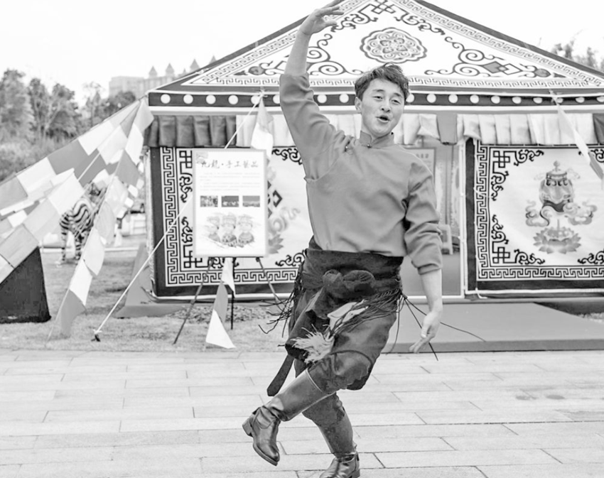 近日,成都青白江櫻花賞花季現(xiàn)場(chǎng),九龍?zhí)厣a(chǎn)品展銷及文化交流區(qū)中,一群藏族姑娘、小伙正在為游客表演康巴歌舞。由兩名小伙表演的舞蹈《雪域驕子》贏得觀眾陣陣掌聲,他倆粗獷奔放的舞姿,時(shí)而化作展翅的雄鷹,時(shí)而化作奔騰的駿馬,展示出康巴漢子的熱情、勇敢。其中一位小伙子的表現(xiàn)力很強(qiáng),深厚的舞蹈功底給大家留下了深刻的印象。他就是來(lái)自九龍縣格?;ㄋ囆g(shù)團(tuán)的演員來(lái)讓次稱。