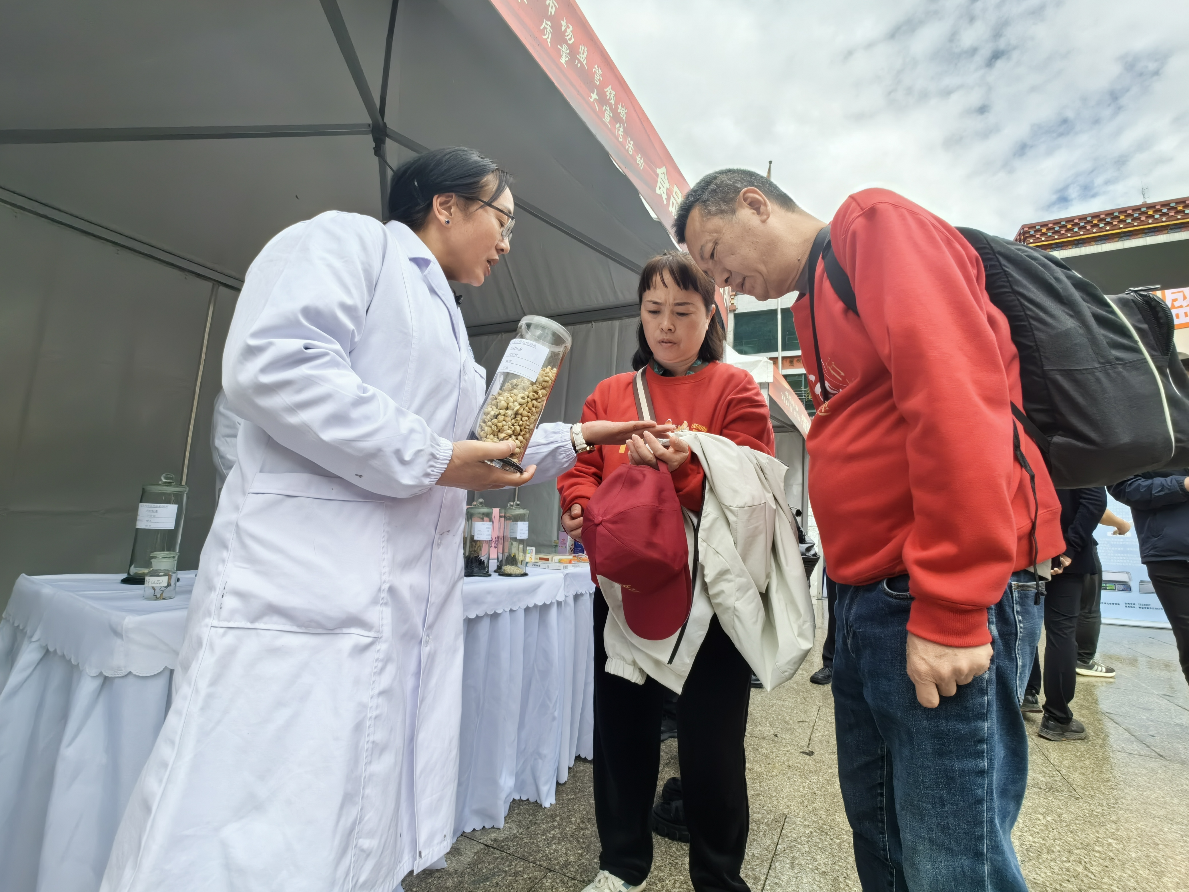 在放心消費科普區(qū),州食品藥品檢驗所工作人員劉玉瓊為重慶游客張繼渝介紹川貝辨別訣竅:“川貝由兩瓣組成,一般是一大一小兩瓣,大瓣包小瓣,大家稱為‘懷中抱月’……”當(dāng)起“推廣員”、介紹高原特產(chǎn),既讓消費者買到正宗產(chǎn)品,又讓高原特產(chǎn)暢通銷路,走向更大銷售市場。