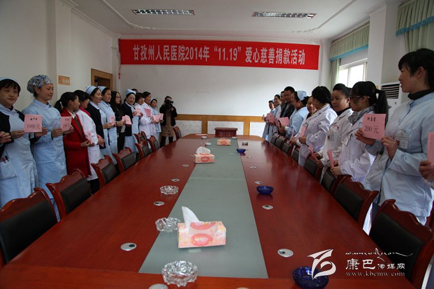 近日,州醫(yī)院組織開展了2014年“11·19”愛心慈善捐款活動,廣大醫(yī)護人員紛紛獻上了自己的一份愛心,圖為捐款活動現場。 (院辦 攝影報道)