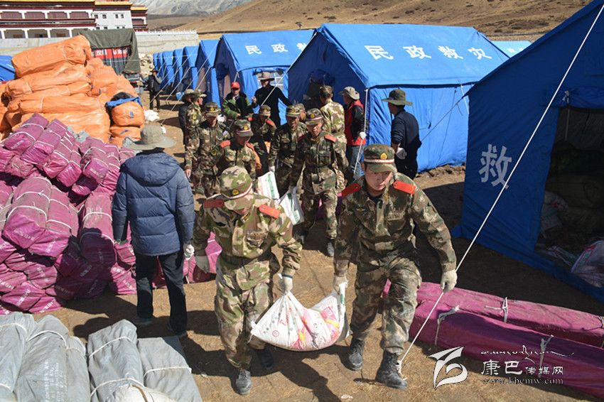 州森警支隊(duì)參謀長帶前指和康定中隊(duì)60人到達(dá)震中塔公鎮(zhèn)奪讓村和木雅祖慶學(xué)校。官兵看到校舍慘景和師生驚慌失措表情,忘記了奔波疲勞和自身安危,有序疏散30名師生、搶救學(xué)校2臺受損車輛,冒著零下近10度的低溫,連夜為師生搭建帳篷17頂、簡易廁所10個(gè),參戰(zhàn)官兵一夜未睡奮戰(zhàn)至黎明。23日8時(shí)10分,參戰(zhàn)的森警官兵又奉命轉(zhuǎn)戰(zhàn)至瓦澤鄉(xiāng)魚子西1、2、3村,為藏牧民轉(zhuǎn)移牦牛等牲畜200余頭,從危房中搬運(yùn)大米、青稞等糧食11.8噸,沙發(fā)、銅火爐、電視機(jī)等1680余件(套)。24日上午官兵又深入到瓦澤鄉(xiāng)麥巴村,為受災(zāi)群眾拆除危房2間、搬運(yùn)危房內(nèi)貴重物品10余噸,下午,抗震救災(zāi)指揮部又緊急調(diào)參戰(zhàn)森警官兵為沙德鄉(xiāng)運(yùn)送棉帳篷等救災(zāi)物資,支隊(duì)前指帶50人動(dòng)用6臺車輛機(jī)動(dòng)110公里到達(dá)沙德鄉(xiāng)政府,又連夜劃分四個(gè)行動(dòng)小組為沙德鄉(xiāng)7個(gè)偏遠(yuǎn)村(組)將帳篷運(yùn)送到位,官兵一夜未睡將10余頂棉帳篷依次搭建到位。25日上午,官兵又接到塔公鎮(zhèn)扎西寺僧尼告急,60名官兵顧不上吃飯,緊急出動(dòng)運(yùn)輸15頂棉帳篷,奮戰(zhàn)扎西寺5個(gè)安置點(diǎn),至晚19時(shí)才搭建完畢,官兵就座運(yùn)兵車?yán)锎蝽镄菡?6日上午,武警總部工作組看望慰問參戰(zhàn)一線官兵,官兵精神振作,按抗震救災(zāi)指揮部指示,60名官兵在聯(lián)指物資發(fā)放中心,搬運(yùn)裝卸棉帳篷、棉大衣、棉被等越冬衣物和礦泉水、大米、面粉、蔬菜等生活物資68噸。目前,60名官兵仍奮戰(zhàn)一線,雅江大隊(duì)、道孚大隊(duì)部分官兵在各自轄區(qū)展開震后自救互救行動(dòng)。