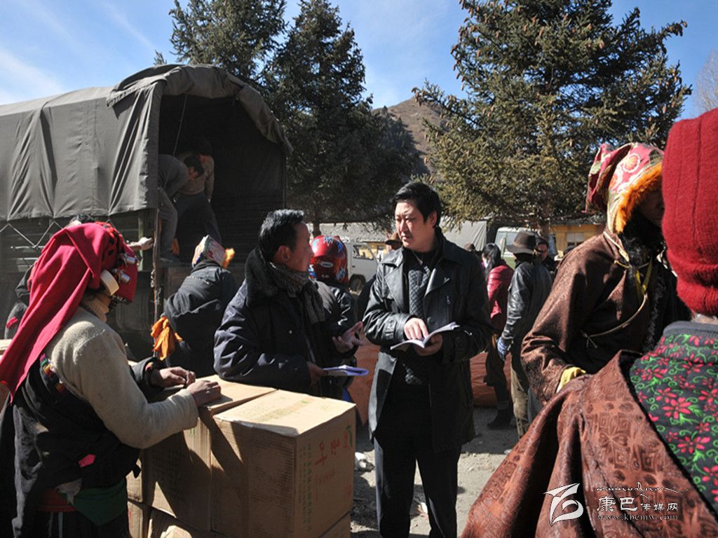 康定縣紀委工作人員在塔公鎮(zhèn)核查救災(zāi)物資發(fā)放情況。