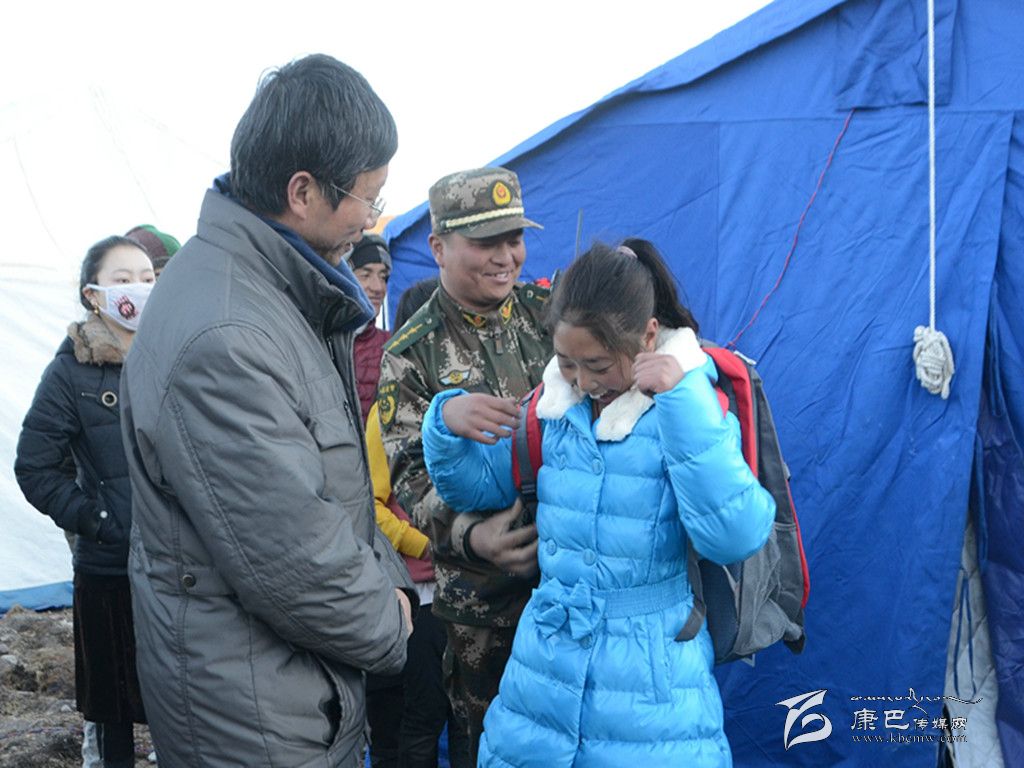 由于受此次地震影響,西康福利學(xué)校的孩子們已經(jīng)放假回到親戚家寄宿。塔公救災(zāi)一線的官兵們利用休息時間,向胡忠仔細打聽5個孤兒的身高和臨時住址,大家主動集資專門采購了羽絨服、書包、文具和米面油等物資。10日下午,官兵們在西康福利學(xué)校老師的陪同下,驅(qū)車百余公里,先后深入到塔公鎮(zhèn)江巴村、多拉一村、各日馬村、下馬龍村和朋布西鄉(xiāng)奪讓村,跨河溝、爬山坡,鉆帳篷、進板房,提著新買的衣服、書包,扛著米面,逐一走訪這些孤兒所寄宿的家,勉勵他們在困境中自強不息,努力學(xué)習(xí),為自己的夢想而頑強拼搏,并與孤兒所寄宿的親戚細心溝通交流,囑咐他們照顧好可憐的孩子,有困難找武警,大家齊心協(xié)力為孤兒創(chuàng)造一個溫暖的家,為孤兒的成長成才盡最大的努力。