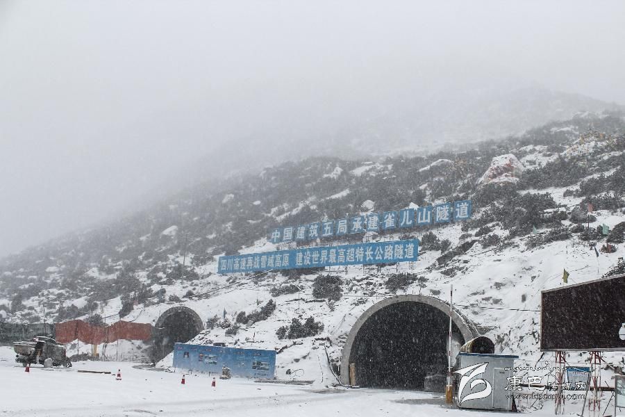 由于冬季天氣寒冷,雀兒山隧道口被白雪覆蓋?!⌒氯A社發(fā)