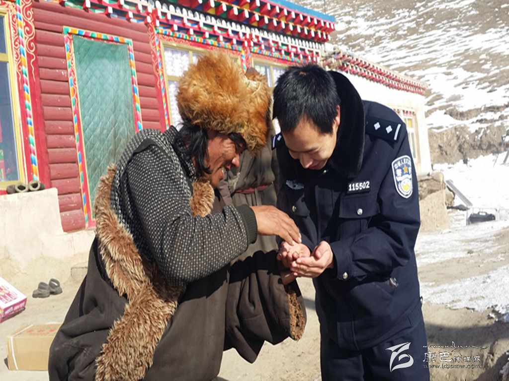 一月的扎溪卡草原大雪飄飄,氣溫降到了零下,州公安局結對認親小分隊的民警們不顧嚴寒,在春節(jié)和藏歷新年即將來臨之際,帶著黨委政府的問候、帶著州公安局黨委和全局民警職工的一片心意,驅車千里,來到被譽為生命禁區(qū)的石渠縣格孟鄉(xiāng)走訪慰問,小分隊的民警們遠遠地就看見“親戚”們排著長隊,拿著哈達在風雪中等候,當小分隊民警來到他們面前時,老村支書拉著小分隊民警的手激動地說:“快過春節(jié)了,天這么冷,還下著雪,路又那么遠,你們還要來看我們,還帶來那么多慰問品,太感謝了!感謝黨!感謝政府!感謝州公安局!還有我們的公安民警。”