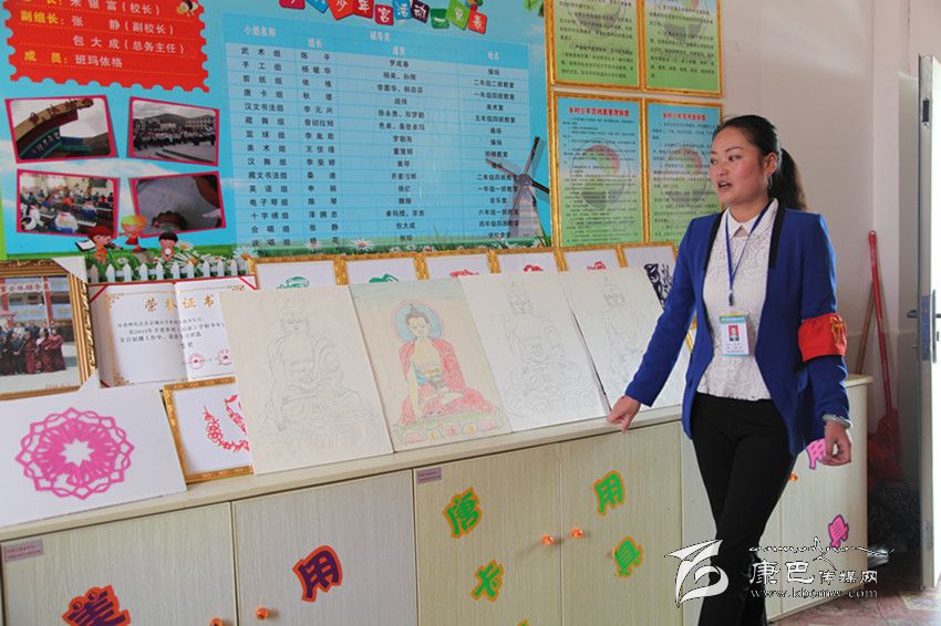 在少年宮孩子們參加格薩爾說(shuō)唱表演的照片和一件件作品前,負(fù)責(zé)少年宮教學(xué)的張靜老師告訴記者,本著弘揚(yáng)傳承傳統(tǒng)文化的宗旨,少年宮目前設(shè)有14個(gè)興趣小組,包括唐卡、說(shuō)唱、舞蹈、剪紙、藏文書(shū)法、手工、電子琴等,有30多名輔導(dǎo)老師利用業(yè)余時(shí)間和自己的特長(zhǎng)從事教學(xué)工作,另外,在色達(dá)縣委宣傳部的支持下,縣文化館還專門選派了兩名輔導(dǎo)員擔(dān)任說(shuō)唱組的教學(xué)工作。