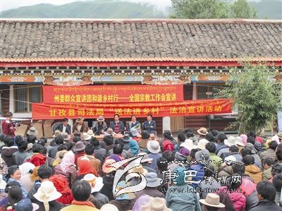 “法律七進”活動做到“動態(tài)普法,法隨人行”,在春耕田間地頭、蟲草采挖地點、發(fā)放惠民資金現場,寓教于樂、獨具民族特色的甘孜“普法模式”不斷推出,“法律趕集”、“法治講堂”、“法治長廊”、“模擬法庭”、“現身說法”,為群眾送上了一場又一場印象深刻的法治“套餐”。 “法律進鄉(xiāng)村”,深化了鄉(xiāng)村法治管理;“法律進機關”,強化了干部法治觀念;“法律進校園”,培育了學生法治意識;“法律進企業(yè)”,夯實了企業(yè)法治根基;“法律進社區(qū)”,擴展了社區(qū)法治視角;“法律進寺廟”增強了僧尼法治認同。