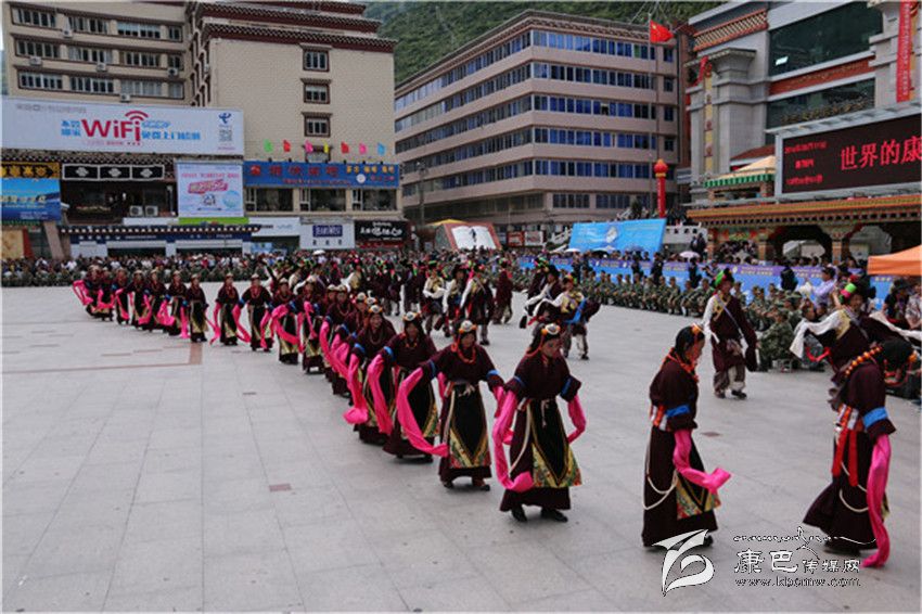 表演在巴塘縣舞之中拉開(kāi)帷幕,上百名身著盛裝的男女演員用歡快的舞步、飄揚(yáng)的云袖向康定市民和四方來(lái)客展現(xiàn)了“弦子之鄉(xiāng)”的淳樸熱情和如畫(huà)風(fēng)光。演員們精彩、投入的表演贏得了現(xiàn)場(chǎng)觀眾的陣陣好評(píng)。分別表演完各自的縣舞之后,三縣人馬一同跳起了甘孜州州舞,在熟悉的《康定情歌》旋律之中,男男女女、老老少少300余人盡情舞蹈,時(shí)而大步流星、時(shí)而小心翼翼、時(shí)而熱情奔放、時(shí)而掩面含羞,黑白、紅黃、藍(lán)綠各色服裝隨著音樂(lè)節(jié)拍交相輝映,繪制成一幅團(tuán)結(jié)友愛(ài)的和諧圖景。
