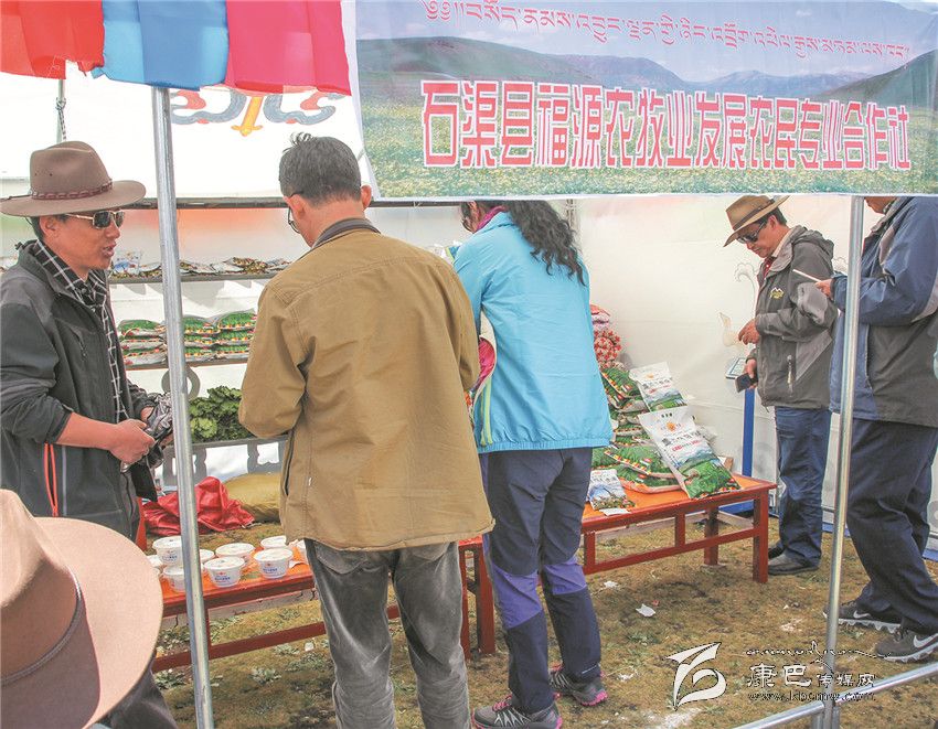 8月3日是石渠縣帳篷節(jié)的最后一天,清晨的陽光透過炊煙傾灑在草原千余頂帳篷上,40多歲的藏族漢子嘎戎從生活區(qū)的帳篷里出來,走向不遠的太陽部落帳篷商貿(mào)城集市。那里安扎著400多頂帳篷,有商戶370家,周邊還有50多個流動的小商販。嘎戎所在的石渠縣福源農(nóng)牧業(yè)發(fā)展農(nóng)民合作社就是其中的一家參展商。從帳篷節(jié)開始,嘎戎就和其它5個人輪流值守這個他們倍加珍惜的展位,那是他們合作社自今年4月份成立至今第一次在如此重大的場合中露面,經(jīng)過這次檢驗,他們對自己的產(chǎn)品更加有信心。駐真達村第一書記祝修濤告訴記者,短短一個星期,合作社展售的糌粑、人參果、奶渣近2000斤,銷售額達4萬多元。這個農(nóng)民專業(yè)合作社以扶貧為己任,從建設種植基地到水磨房加工投入了200多萬元,全村50戶村民參與,合作社將原料統(tǒng)一發(fā)給村民加工,再統(tǒng)一收起來,統(tǒng)一包裝銷售。祝修濤說,社里的產(chǎn)品剛開始只是在當?shù)爻鍪?,雖然投入大但產(chǎn)量不敢做大,這次有這個平臺得到了市場的認可,他們對合作社的發(fā)展充滿了信心。祝修濤,作為該村的第一書記,他要帶領(lǐng)著這個合作社好好規(guī)劃、大干一場。