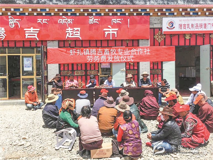 蝦扎鎮(zhèn)吉畜牧專業(yè)合作社勞務費發(fā)放儀式現(xiàn)場。