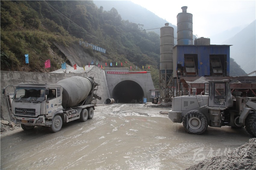 圖為正在加緊后續(xù)施工的磨崗嶺隧道。該隧道通車后,將避開大板巖滑坡區(qū),進入海螺溝景區(qū)的道路將更加順暢。本網(wǎng)記者 周華 攝