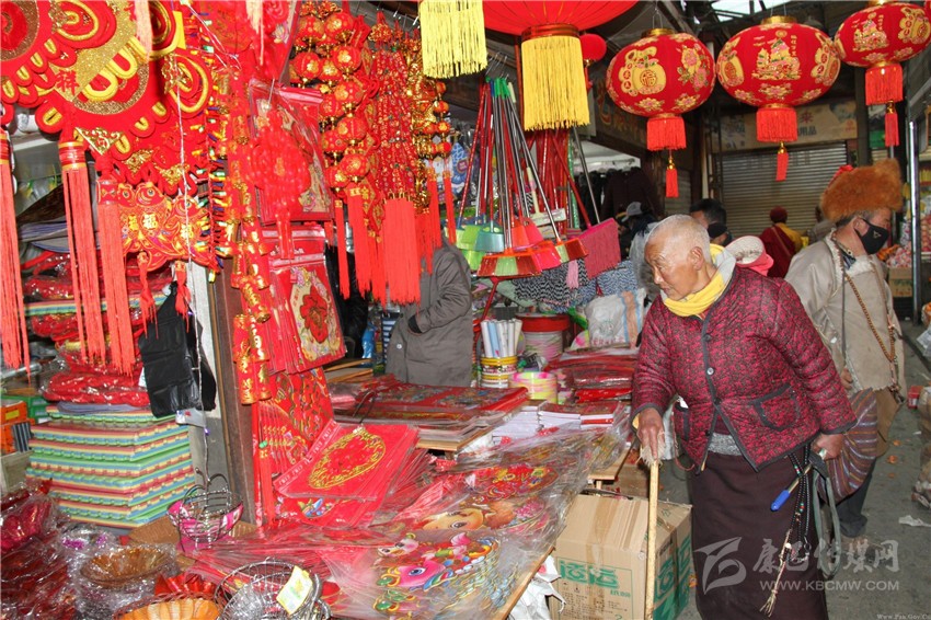 在康定市,無論是在康定民貿(mào)公司各商場、鄰里超市,還是在康定郭達農(nóng)貿(mào)市場,人們關(guān)心最多的還是年貨。“2017年是雞年,家里要掛些雞年物件,這不正在選購?!薄斑^年少不了的就是酒、煙、茶和飲料等?!闭谥棉k年貨的市民告訴記者。