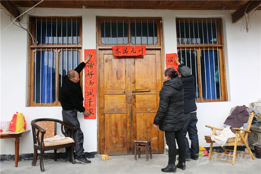 本網(wǎng)訊(賴天 文/圖)22日中午,老陳吃完午飯,就急急忙忙將早已準(zhǔn)備好的春聯(lián)拿了出來(lái),用糨糊刷在門(mén)框上,然后小心地開(kāi)始貼春聯(lián)。“右邊那聯(lián)往下點(diǎn),有點(diǎn)偏高。”老陳的妻子在門(mén)前面指揮著,他們的小孫子也興致勃勃地跑來(lái)給爺爺幫忙。