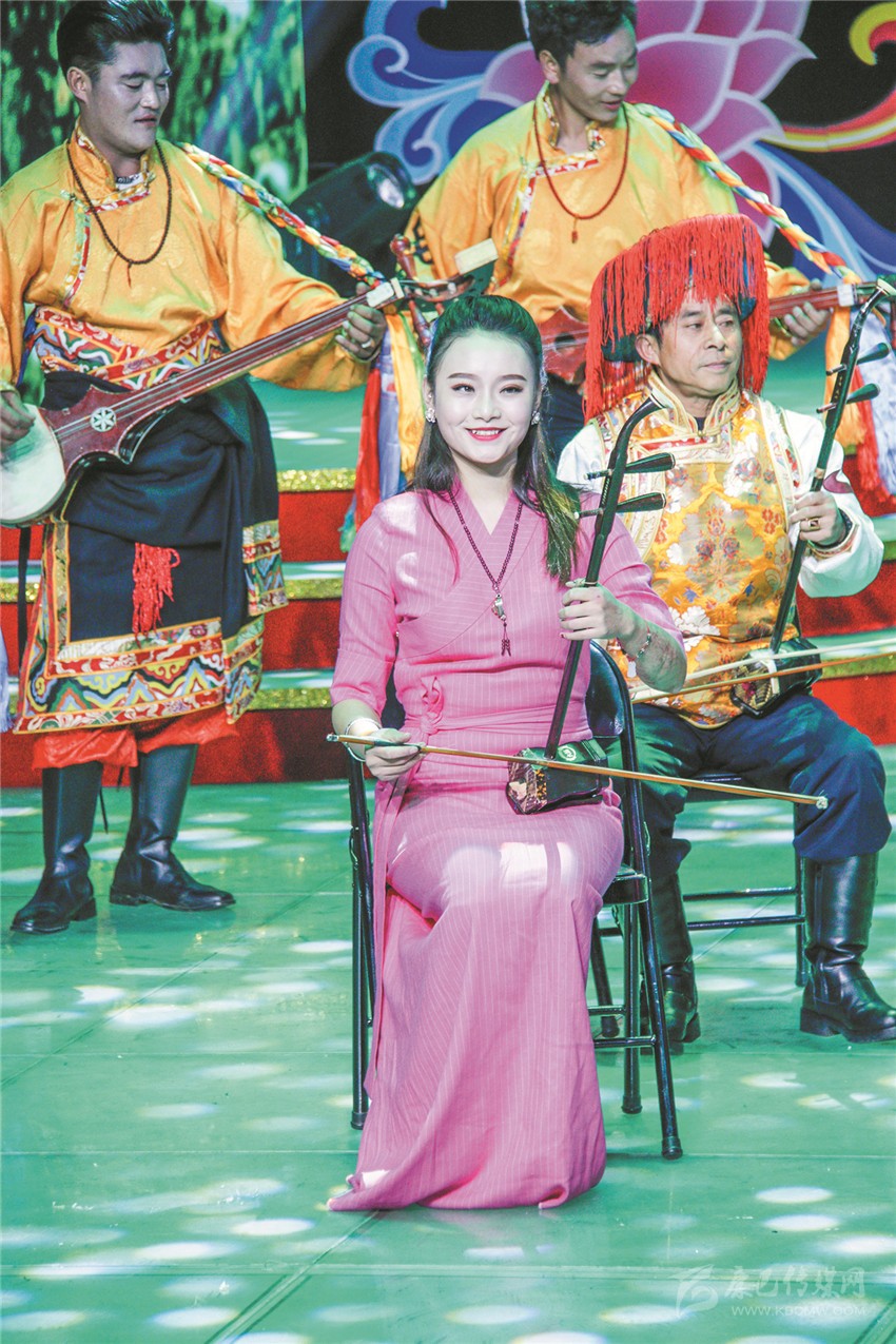 歌曲聯(lián)唱《百花爭艷》,是演出中第一個讓觀眾們大呼過癮的節(jié)目,年僅5歲的澤仁拉姆用一首藏族原生態(tài)歌曲《故鄉(xiāng)》,讓全場觀眾耳目一新。緊隨而來的藏族山歌《家鄉(xiāng)美》、漢族歌曲《和諧大家園》、回族歌曲《花兒與少年》、彝族歌曲《 尼雨尼杰》將音樂的魅力逐級顯現(xiàn),最后在經(jīng)典歌曲《愛我中華》中急速升華。6首歌曲風(fēng)格各異,卻又一氣呵成,不僅集中展示了我州藏、漢、回、彝四個民族的藝術(shù)風(fēng)采,還生動展現(xiàn)了我州各族人民其樂融融、團(tuán)結(jié)進(jìn)步的和諧面貌。