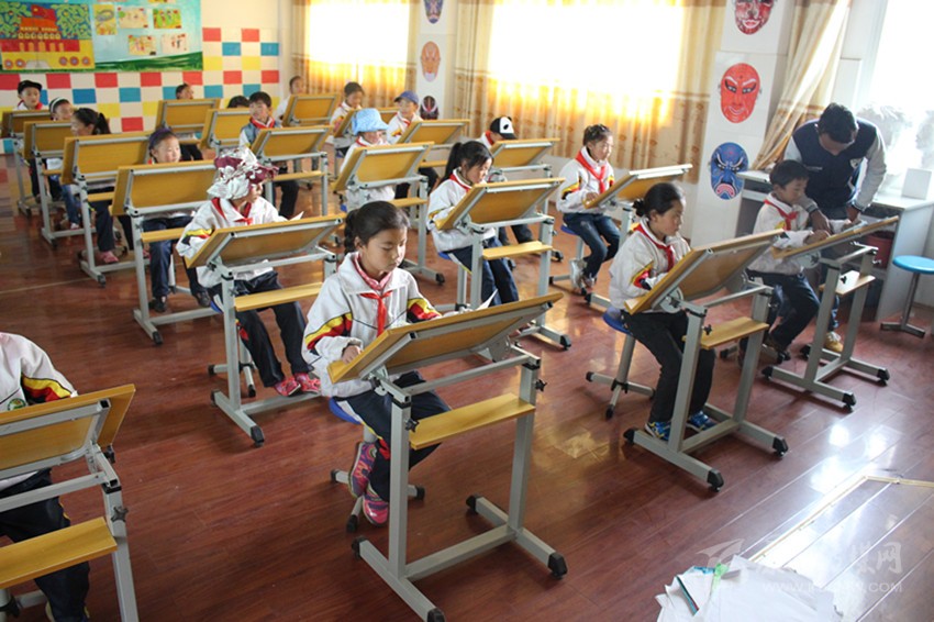色達(dá)小學(xué)生正在上美術(shù)課。