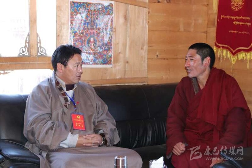 宣講團(tuán)成員與僧人交流。新龍縣委中心報道組 攝