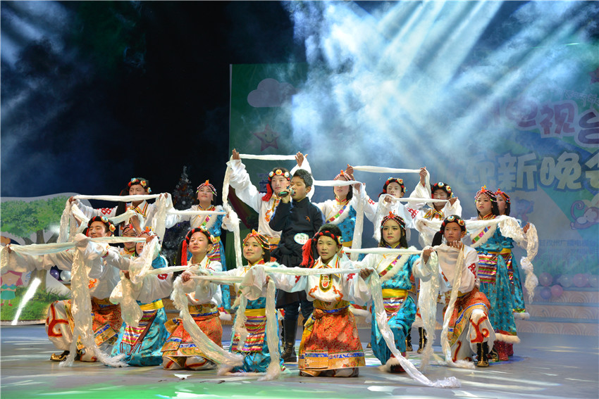 州特殊教育學(xué)校學(xué)生表演文藝節(jié)目。