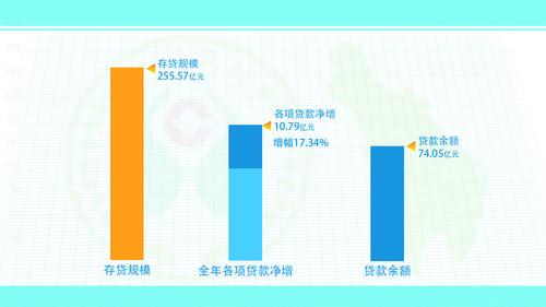 ——存貸規(guī)模高速增長。截至2017年末,甘孜農(nóng)信存貸規(guī)模255.57億元,全年各項存款凈增21.71億元,增幅13.59%,位居全州銀行業(yè)金融機構(gòu)第一位,余額達到181.52億元,服務(wù)地方經(jīng)濟的實力進一步增強;各項貸款凈增10.79億元,增幅17.34%,余額達到74.05億元,有力支持了經(jīng)濟社會發(fā)展。