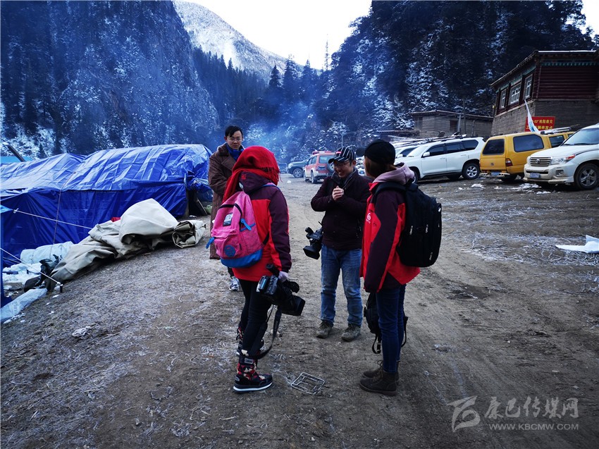 11月6日晚,甘孜日?qǐng)?bào)記者馬建華、張磊、余秋林和州廣播電視臺(tái)副臺(tái)長(zhǎng)何良忠、記者洛嘎、肯布及白玉電視臺(tái)記者連夜趕赴則巴村中轉(zhuǎn)站。26公里的崎嶇山路,冰雪道危險(xiǎn)重重,坡陡彎急,司機(jī)憑借經(jīng)驗(yàn)在坡度60度以上的暗冰道上行駛,經(jīng)過(guò)兩個(gè)多小時(shí)的艱難行進(jìn),采訪組終于入住前方救災(zāi)組搭建的救災(zāi)帳篷。深夜,大雪紛揚(yáng),帳篷里寒氣襲人。帳篷四周,狗叫聲不止,一條狗鉆進(jìn)帳篷,蜷縮在記者床鋪旁邊,因?yàn)樘?,記者們不忍心將它?qū)離。11月7日,白格堰塞湖庫(kù)容量達(dá)到2.71億立方米,白格堰塞湖形勢(shì)嚴(yán)峻,嚴(yán)重威脅我州金沙江下游群眾生命財(cái)產(chǎn)安全。一大早,10多公分厚的大雪扮美了村莊,卻給機(jī)具、救災(zāi)物資、救援人員進(jìn)出等帶來(lái)極大困擾?!拔覀兊耐诰驒C(jī)司機(jī)在山上被大雪困了一夜,徒步到中轉(zhuǎn)站休息了三個(gè)小時(shí)又到山上去作業(yè)了,你們應(yīng)該去采訪一下?!敝菡敝蓍L(zhǎng)何康林說(shuō)。