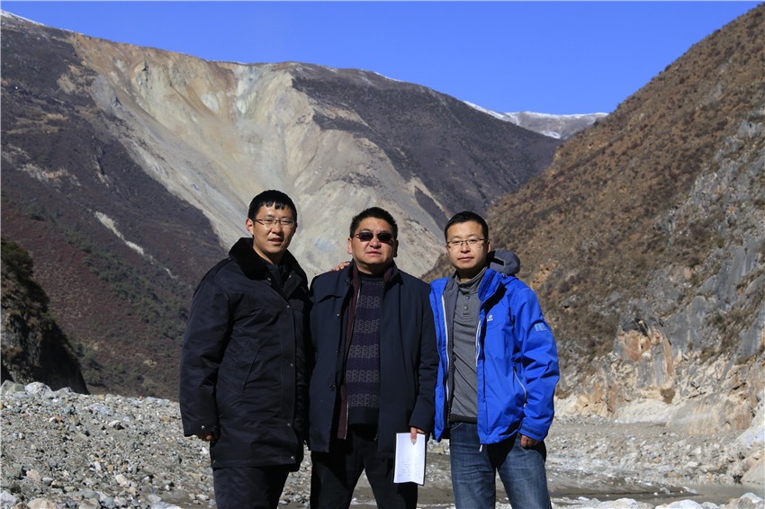 記者在堰塞湖現(xiàn)場(chǎng)拍攝。