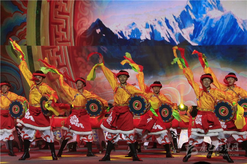 隨后以三個(gè)“新”字為主題的篇章,更是彰顯了民族風(fēng)情、甘孜風(fēng)格、時(shí)代風(fēng)貌。挖掘民族素材、彰顯民族文化,甘孜歌舞團(tuán)以格薩爾傳說為“藍(lán)本”,推陳出新表演的《格薩爾仲肯》,讓民族文化熠熠生輝;民族文化需傳承,少年強(qiáng)則甘孜強(qiáng)。德格縣中學(xué)少兒則噶表演的《吉祥頌》,讓人感到后生可畏,贏得陣陣掌聲;富有激情的朗誦、珠聯(lián)璧合的配樂,《甘孜與祖國(guó)相約出發(fā)》讓現(xiàn)場(chǎng)觀眾真切地感受到了盛世中華,真情贊美幸福美好的新生活;歌曲大聯(lián)唱《如歌歲月》通過不同時(shí)代的代表性歌曲,唱出了甘孜兒女愛祖國(guó)、愛家鄉(xiāng),感黨恩、思奮進(jìn)的真摯情懷;由州歌舞團(tuán)和爐霍、丹巴、德格、巴塘等縣藝術(shù)團(tuán)聯(lián)袂上演的《幸福大家庭》,既有漢族歌舞《祝福祖國(guó)》、藏族舞蹈《放牧人》、蒙古族舞蹈《送親》、彝族舞蹈《彝家情》、回族舞蹈《花兒》,更是彰顯了民族團(tuán)結(jié)的大主題,為我州創(chuàng)建全國(guó)民族團(tuán)結(jié)進(jìn)步示范州擂鼓助威。