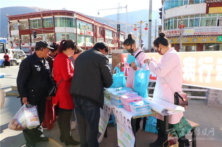 活動現(xiàn)場,工作人員以懸掛橫幅、大屏幕播放宣傳片、發(fā)放宣傳資料等方式,并通過藏漢雙語向群眾講解了結(jié)核病的危害、常見癥狀、傳播途徑、預防措施、治療周期以及國家對結(jié)核病患者的免費政策等,讓大家了解和掌握了結(jié)核病防治知識。