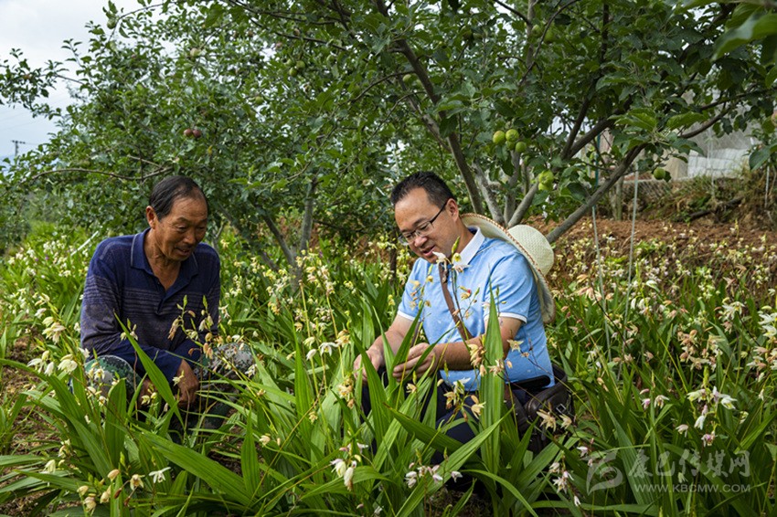 王昇與技術(shù)能手一起研究“林下種植養(yǎng)殖”的方法。