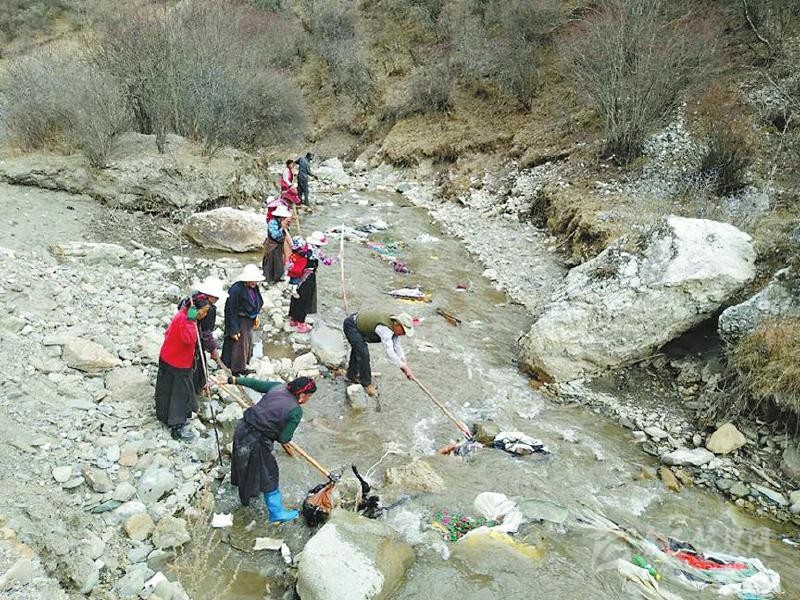 說干就干,黃先明帶領(lǐng)駐村工作隊隊員和村兩委班子成員不畏嚴(yán)寒,首先把全村的道路、公共設(shè)施場地進(jìn)行了清掃,把道路兩邊的小土堆全部鏟平并種上花草,把村民房前屋后的柴火、廢料等重新清理并制定擺放標(biāo)準(zhǔn)。在河道整治中,黃先明帶領(lǐng)村干部沖在前面,對不容易清理到的垃圾,還跳到河里去撿。3月的高原還很冷,鞋子很快被交納河水打濕,但大家全然不顧?!包S隊長都帶頭干,我們更要努力?!苯患{村村民巴登鄧珠說。