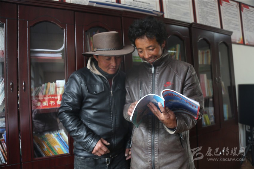 在馬達(dá)村新建的四排房屋的墻頭,分別畫著題為“挖窮根”“挪窮窩”“能增收”“奔小康”的四幅壁畫。“你看這四幅畫,就是我們?nèi)迦说男穆暎F(xiàn)在我們住上了好房子,窮窩算挪了;以往很多人是‘黑眼睛’,吃了沒文化的虧,現(xiàn)在大家重視教育,都把孩子送去讀書,要把窮根挖了;村里建起了牦奶牛養(yǎng)殖基地,產(chǎn)業(yè)發(fā)展了,我們就能增收了;但我們不會(huì)就此滿足,我們還要想著過更好的日子奔小康?!蹦徇戎钢诋嫗橛浾呓庹f著,滿眼是自信的目光。