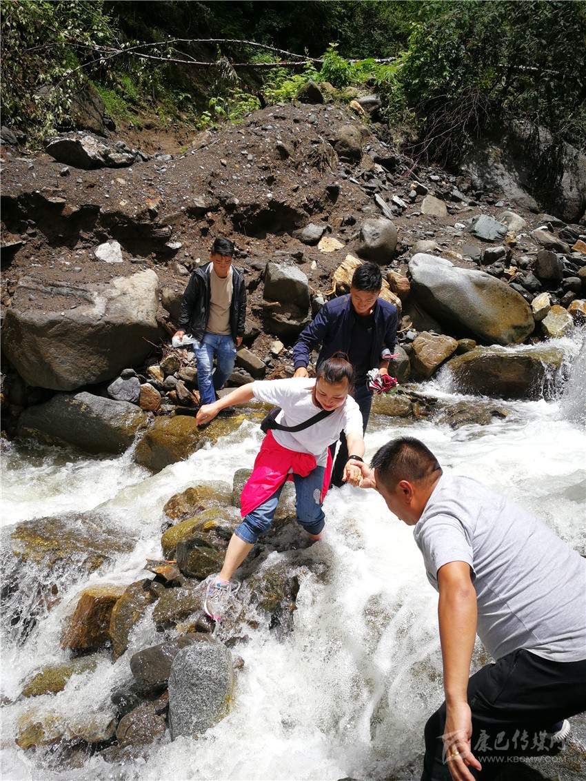 丹巴縣紀委監(jiān)委干部在半扇門鄉(xiāng)火龍溝三村涉水入村開展督查。 圖片均為州紀委景蓉提供